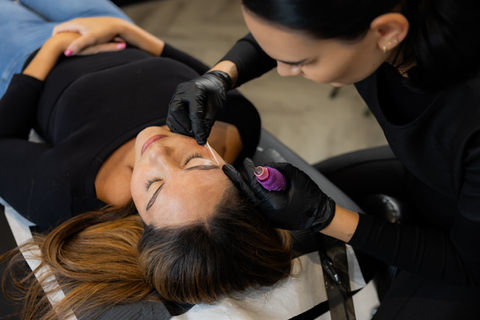 SPMU (Semi-Permanent Makeup) Eyebrows are a cosmetic tattooing technique that enhances the shape, fullness, and symmetry of your brows using soft, pigment-based shading or hairstrokes. Unlike traditional tattoos, the pigment is different and implanted more superficially into the skin, allowing the results to fade gradually over 1–2 years for a natural, customisable look.